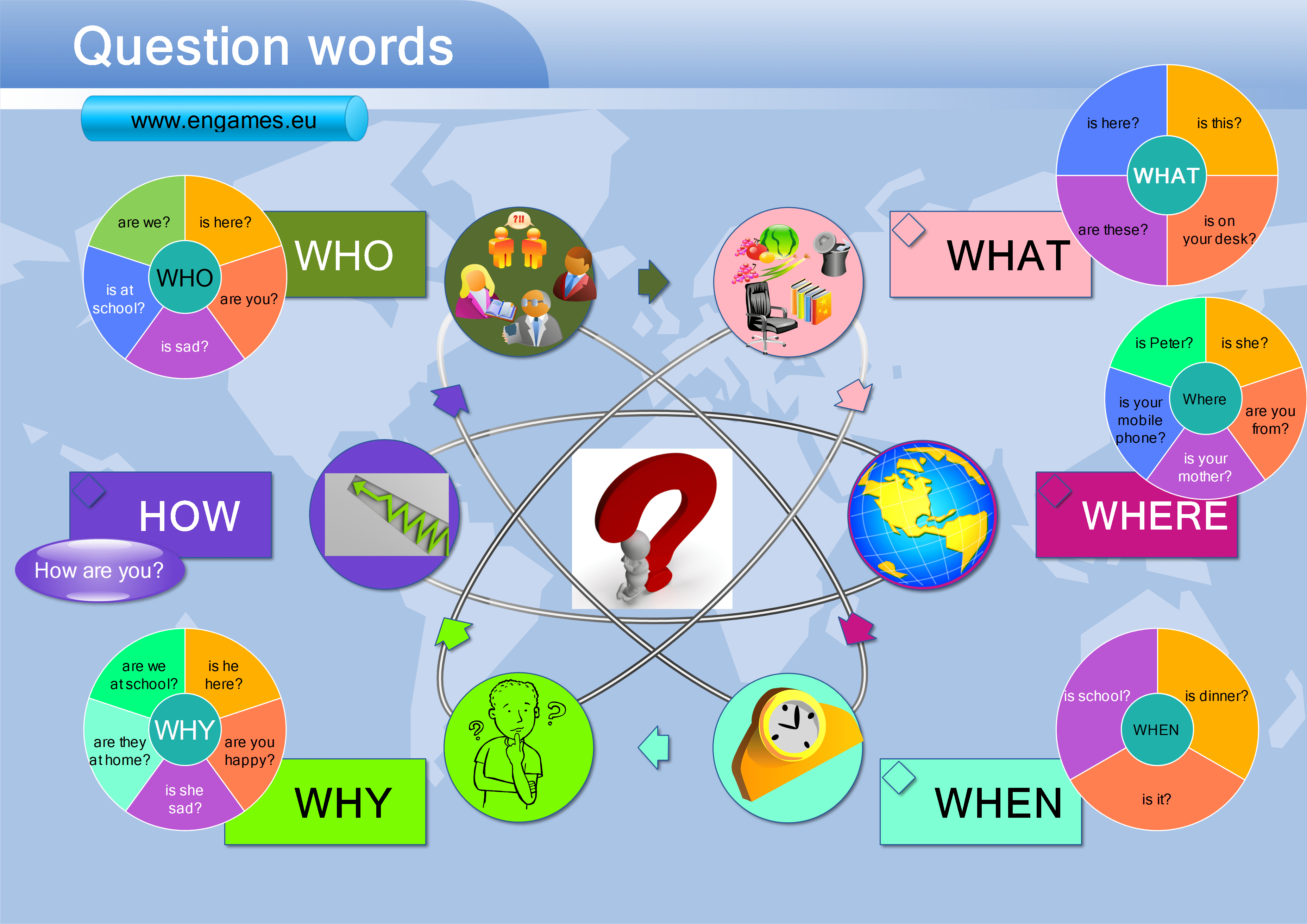 เรียนภาษาอังกฤษออนไลน์ ประโยคคำถามภาษาอังกฤษ (Question Words Mind Map) เรียนภาษาอังกฤษออนไลน์ ประโยคคำถามภาษาอังกฤษ (Question Words Mind Map) By somzom | July 2, 2014 | ← Previous Next →